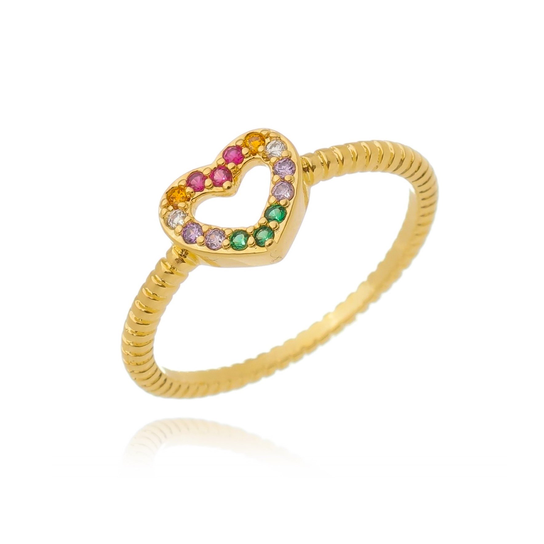 ANEL FITADO CORAÇÃO PEDRINHAS COLORS DOURADO FOLHEADO