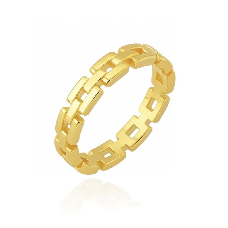 ANEL MALHA RETANGULAR DOURADO FOLHEADO