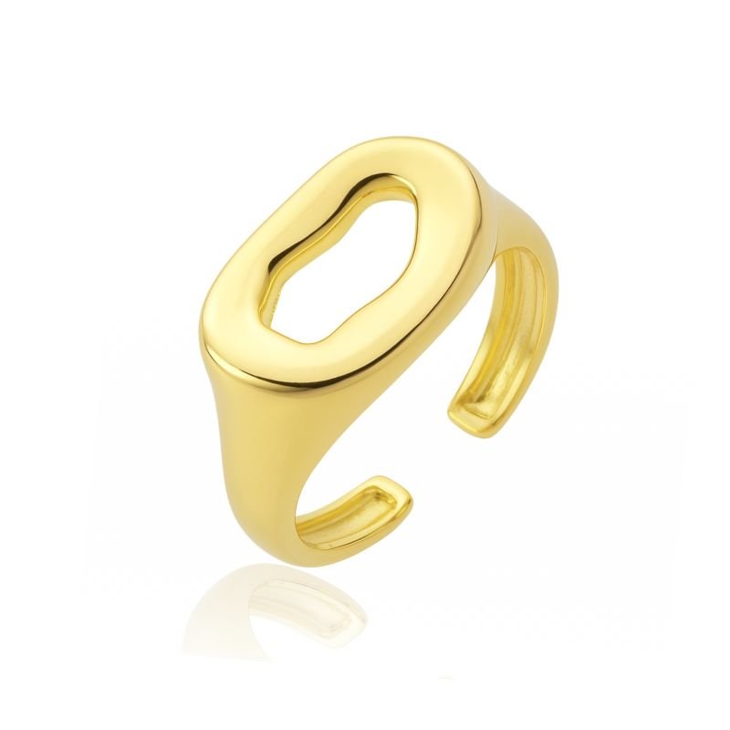 ANEL OVAL FLUIDO VAZADO BANHADO A OURO 18K