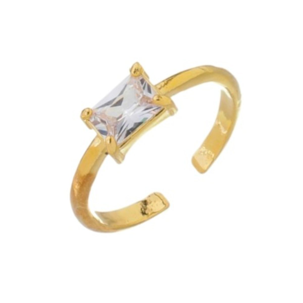 ANEL PEDRA RETANGULAR MINI CRISTAL DOURADO FOLHEADO