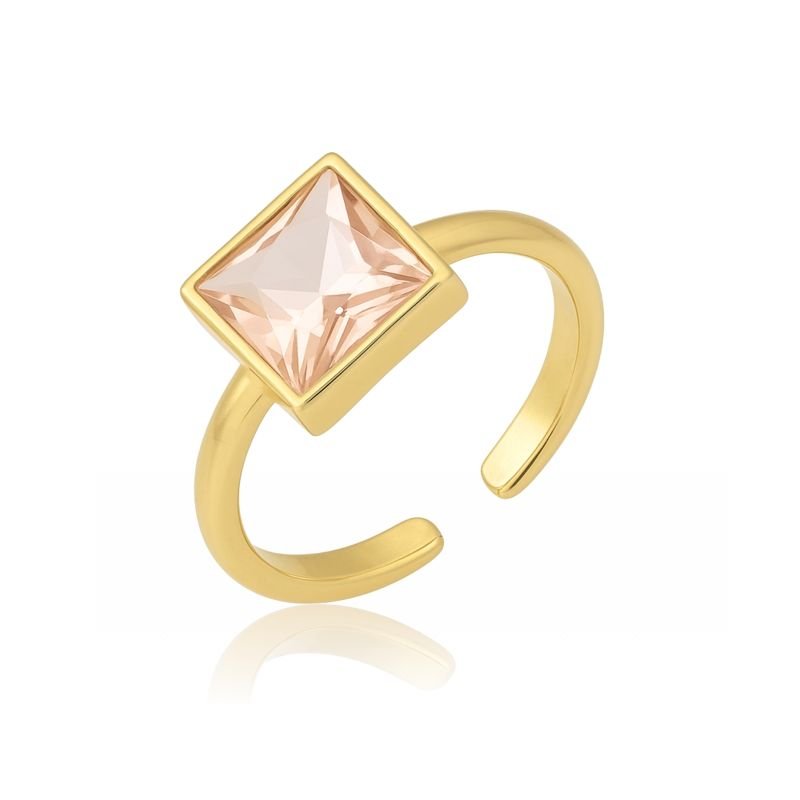 ANEL PEDRA RETANGULAR SAFIRA ROSA BANHADO A OURO 18K
