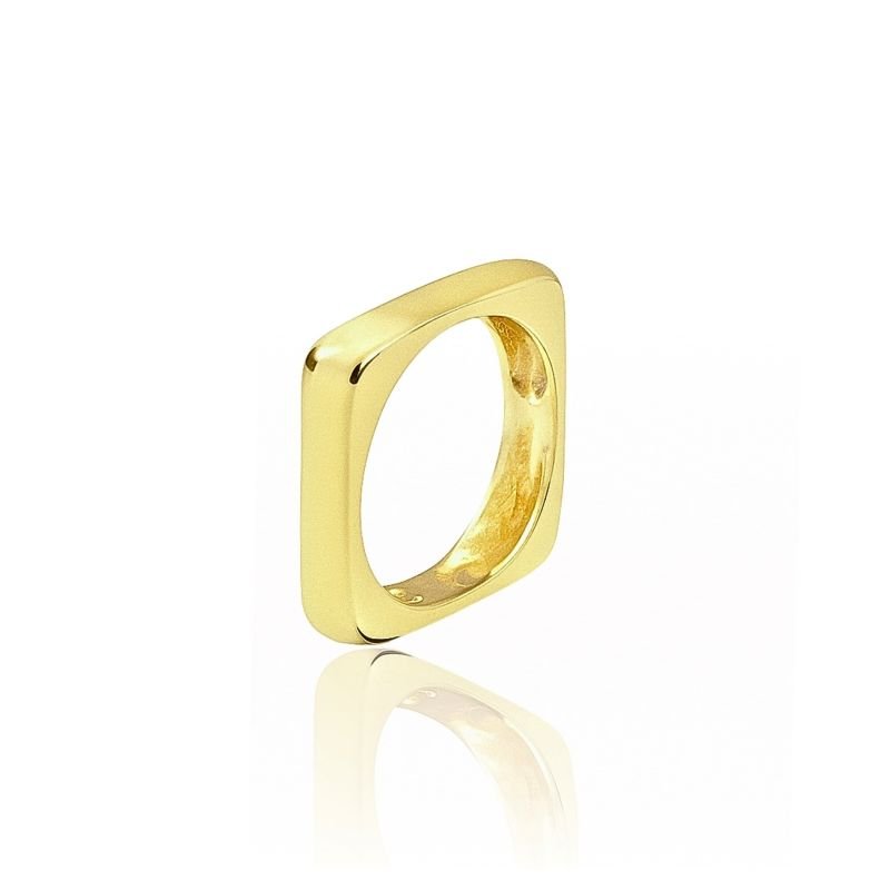 2. ANEL QUADRADO LISO BANHADO A OURO 18K
