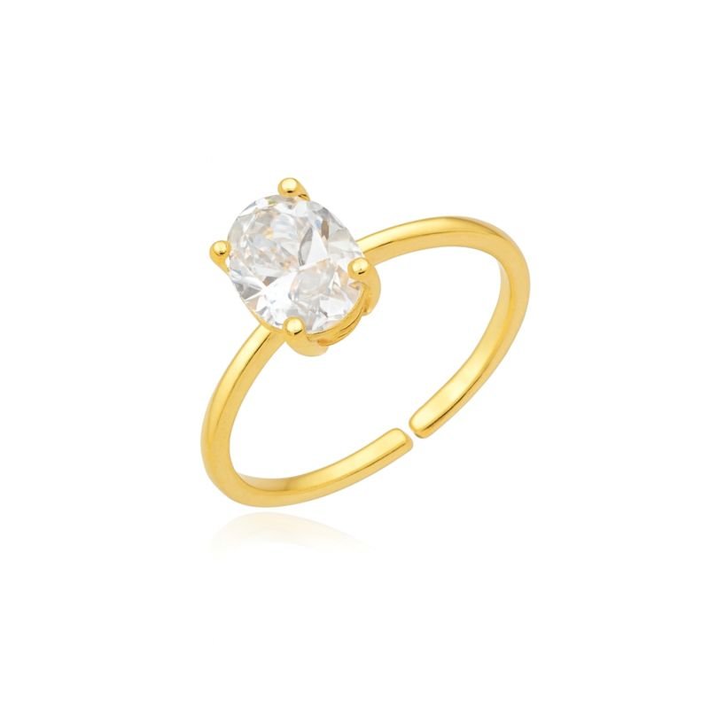 ANEL SOLITÁRIO ZIRCÔNIA AJUSTÁVEL BANHADO A OURO 18K