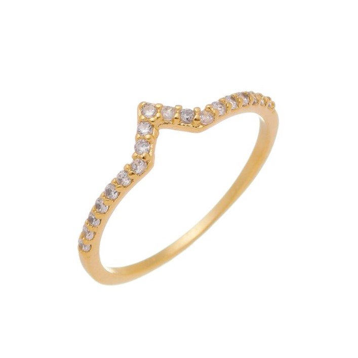 ANEL V ZIRCÔNIAS DOURADO FOLHEADO