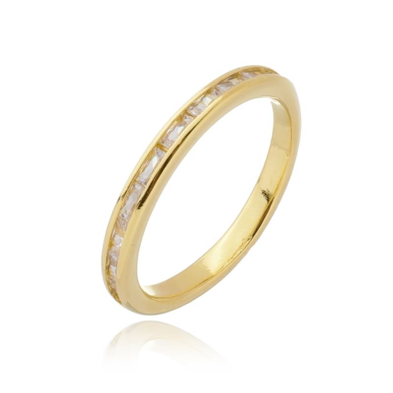 ANEL ZIRCÔNIAS RETANGULARES FOLHEADO A OURO