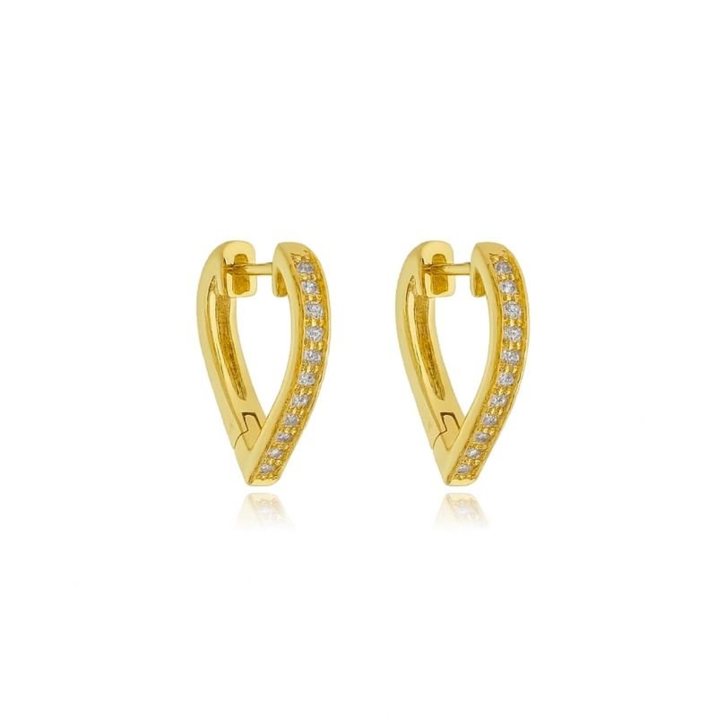ARGOLA CORAÇÃO BASE RETA COM ZIRCÔNIAS DOURADO FOLHEADO