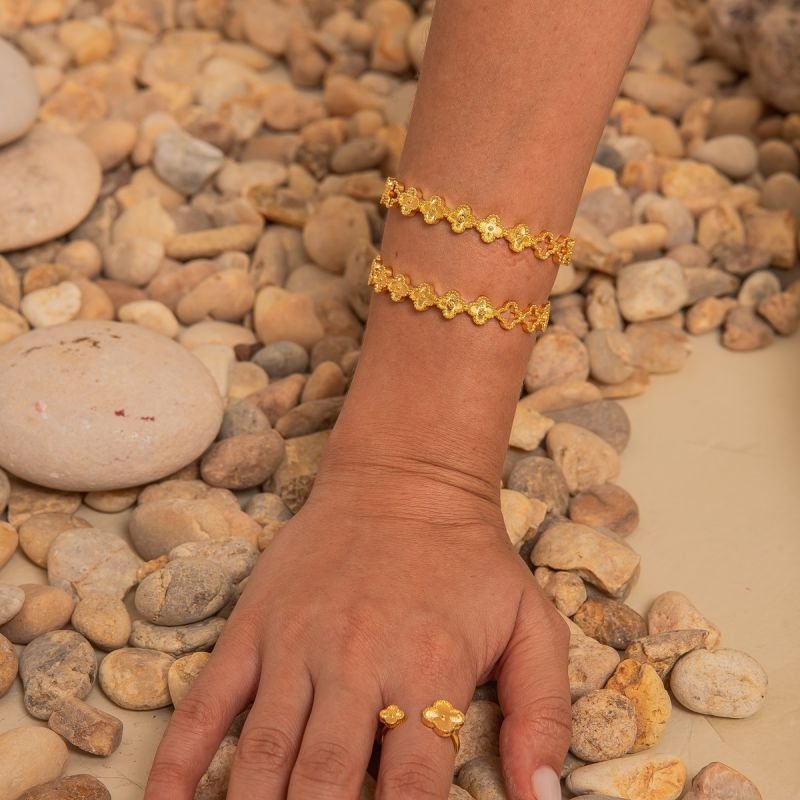 BRACELETE RÍGIDO MINI TREVOS DOURADO FOLHEADO