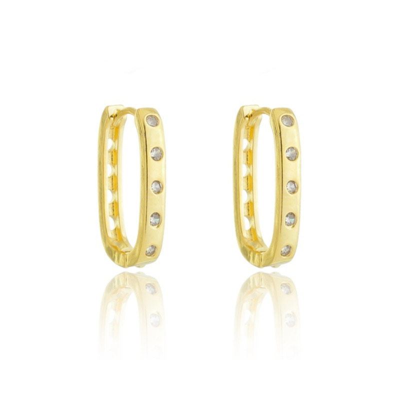 BRINCO ARGOLA RETANGULAR CARTI ZIRCÔNIA G DOURADO FOLHEADO