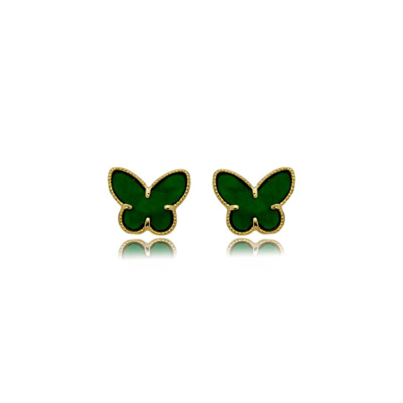BRINCO BORBOLETA VERDE ESMERALDA 8MM BANHADO A OURO 18K