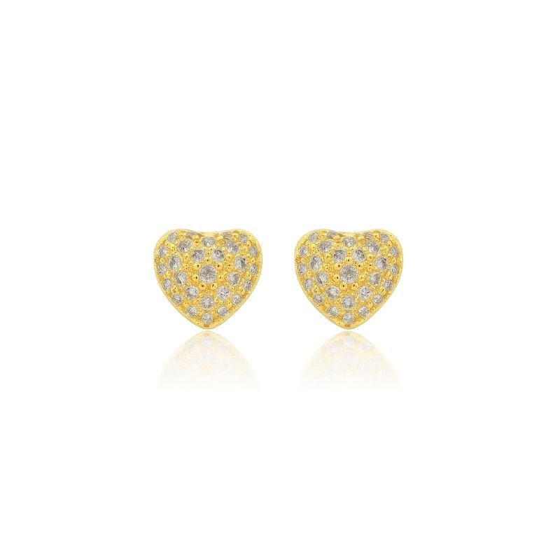 BRINCO CORAÇÃO COM ZIRCONIAS CRAVEJADAS BANHADO A OURO 18K