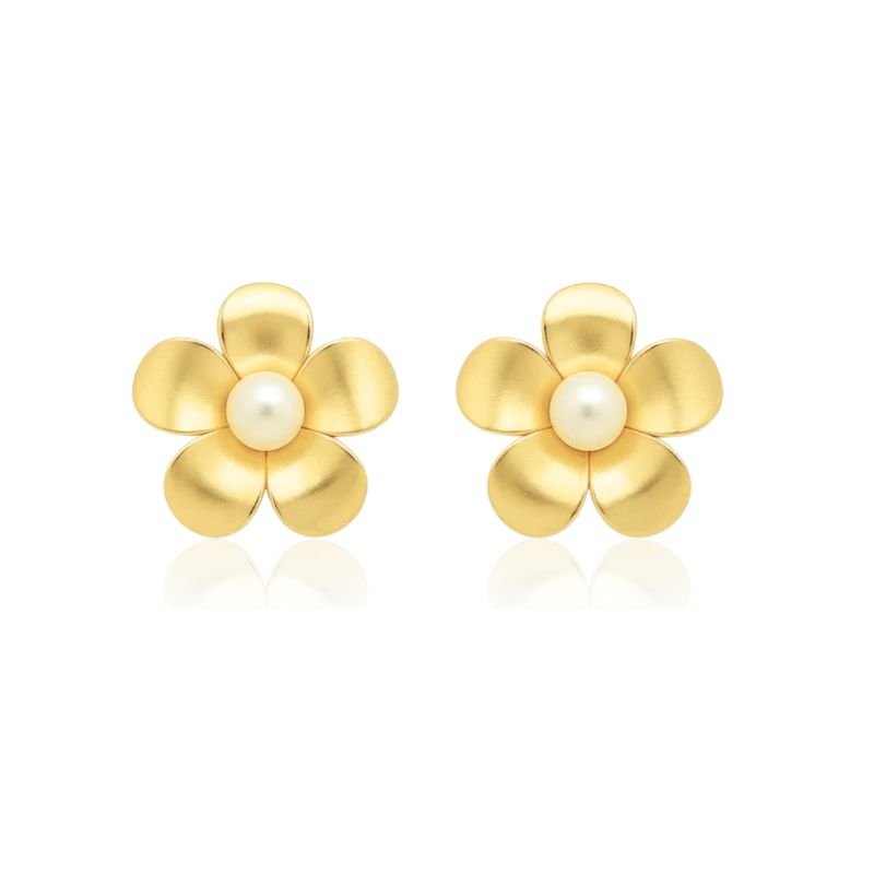 BRINCO FLOR PÉROLA DOURADO FOLHEADO