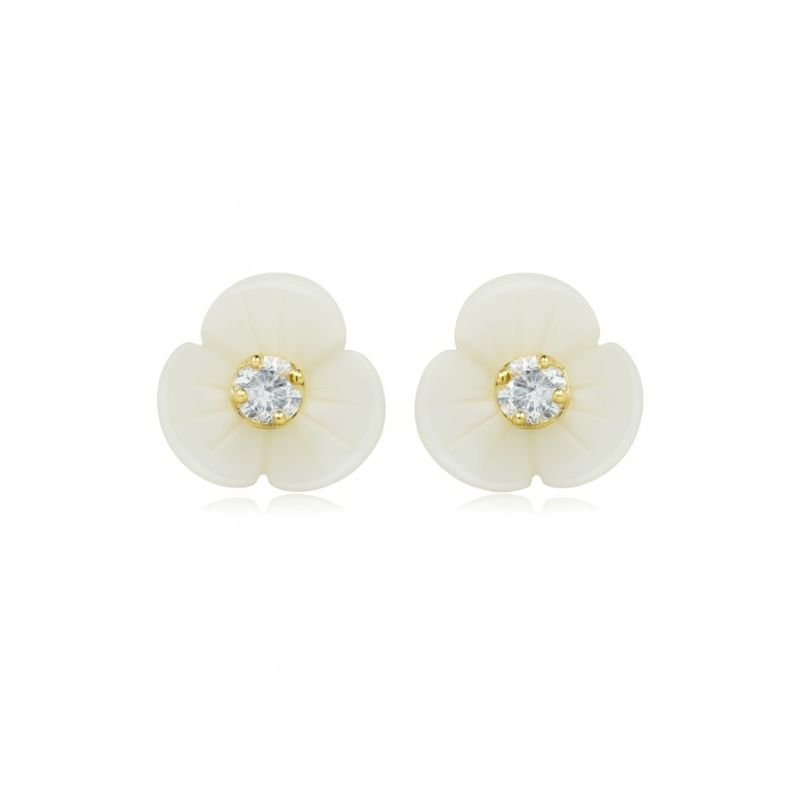 BRINCO FLOR PONTO DE LUZ MADRE PÉROLA BANHADO A OURO 18K