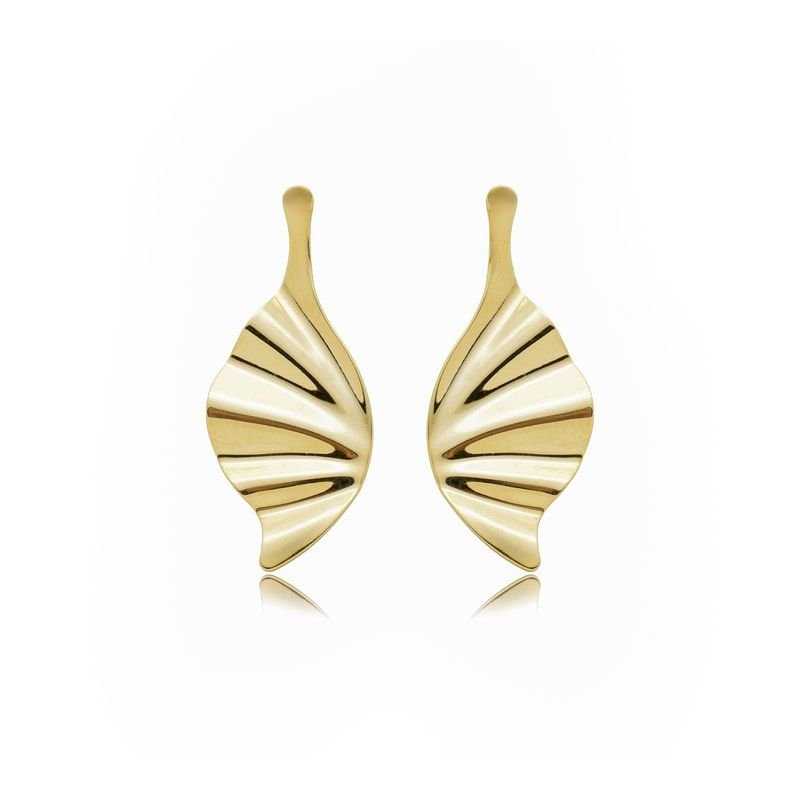 BRINCO MEIA FOLHA BANHADO A OURO 18K