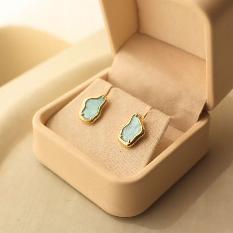 BRINCO ORGANICO AZUL BANHADO A OURO 18K
