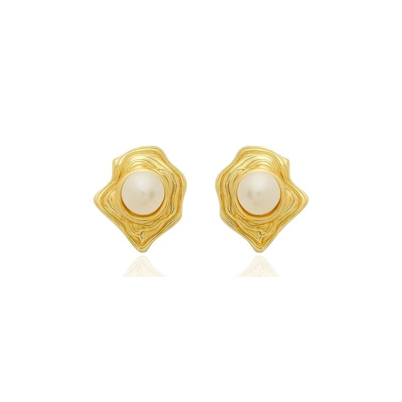 2. BRINCO OSTRA ORGANIC PÉROLA BANHADO A OURO 18K
