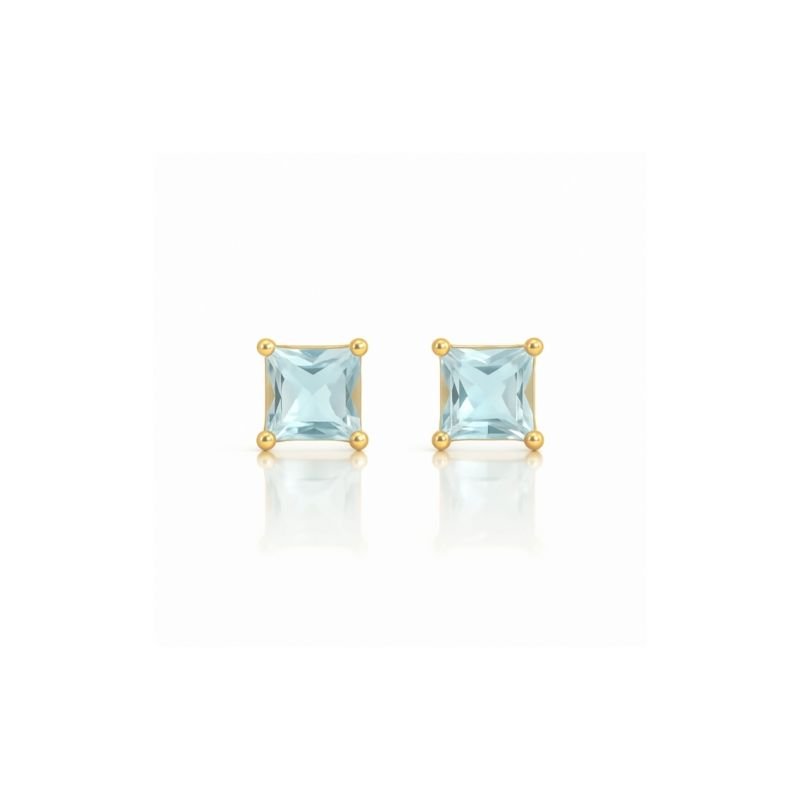 BRINCO PEDRA QUADRADA AZUL CLARO 6X6 BANHADO A OURO 18K