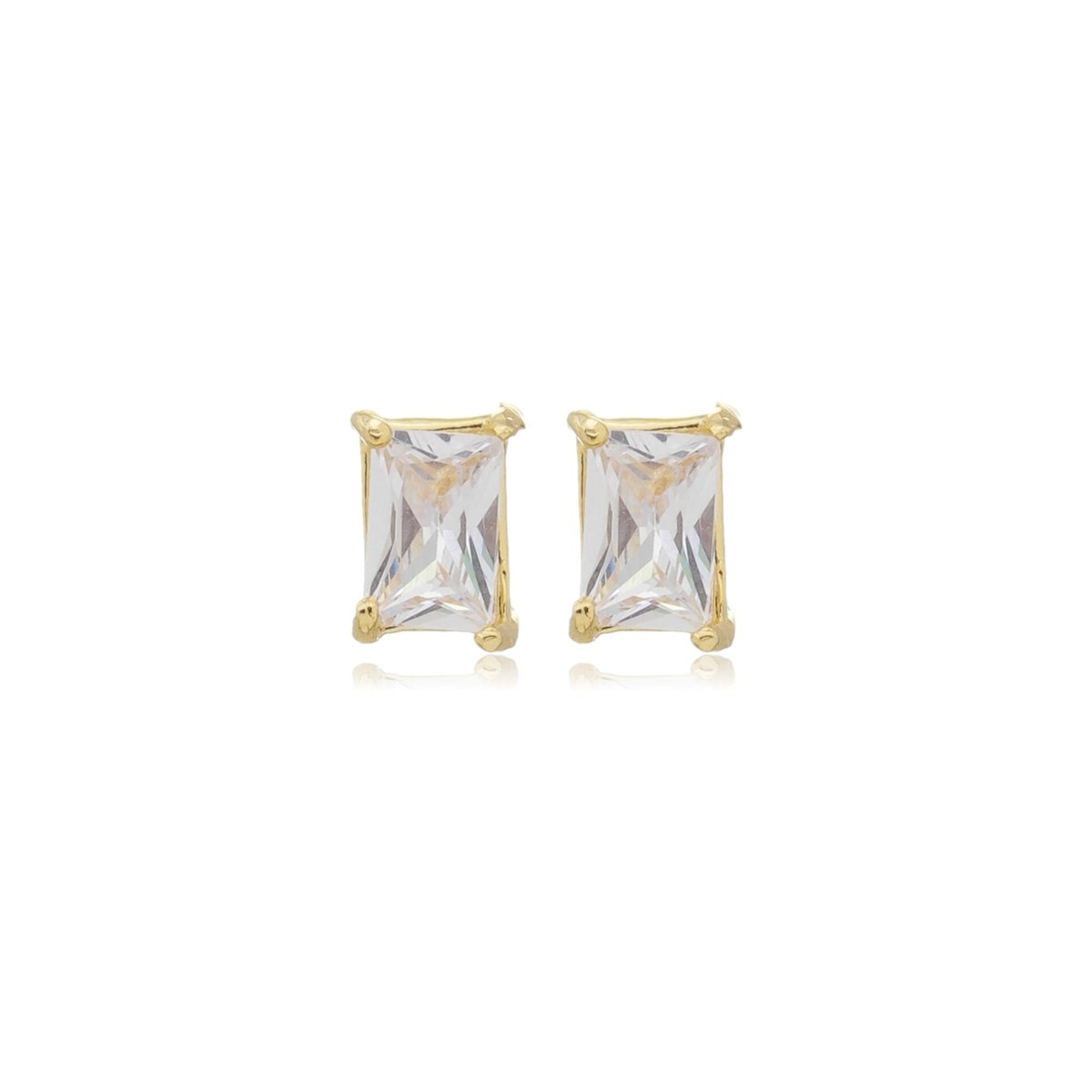 BRINCO PEDRA RETANGULAR MINI CRISTAL DOURADO FOLHEADO