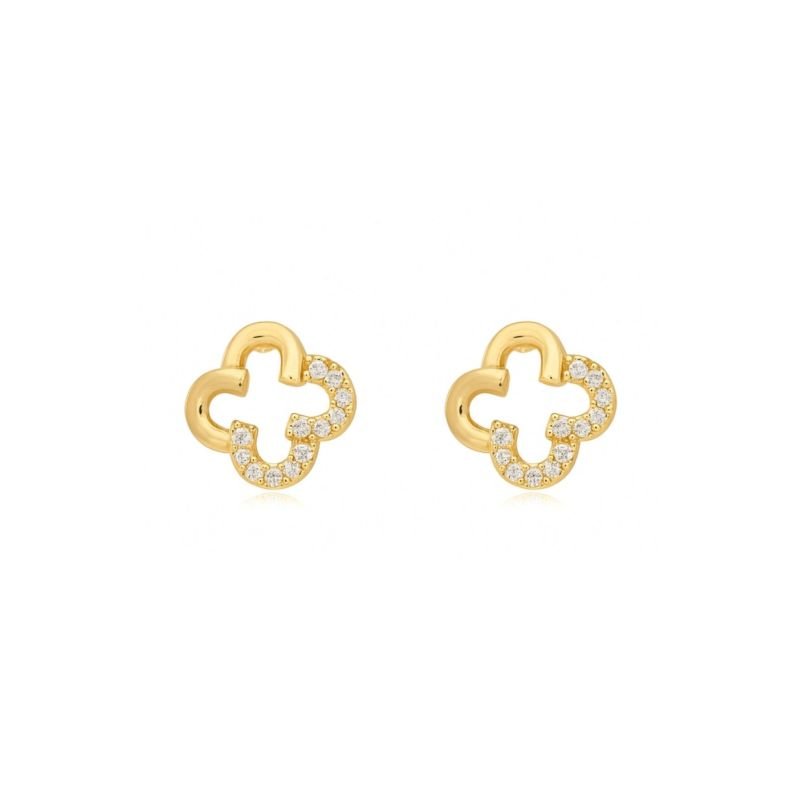 BRINCO TREVO MEIO ZIRCÔNIA M BANHADO A OURO 18K