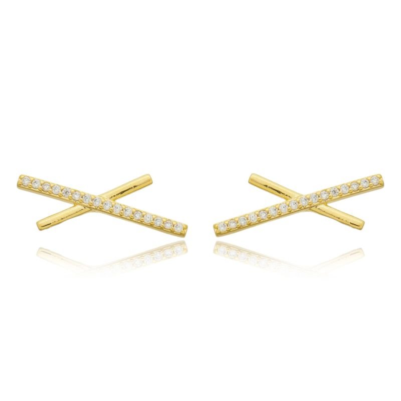 BRINCO X COM ZIRCONIAS DOURADO FOLHEADO