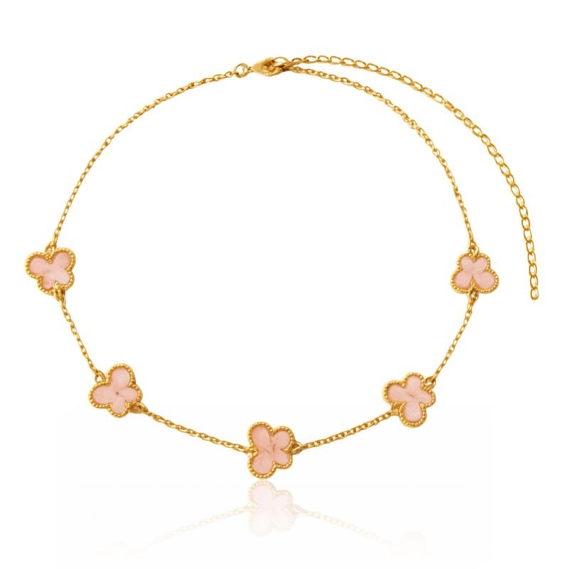 CHOKER BORBOLETA ROSA 10MM BANHADO A OURO 18K