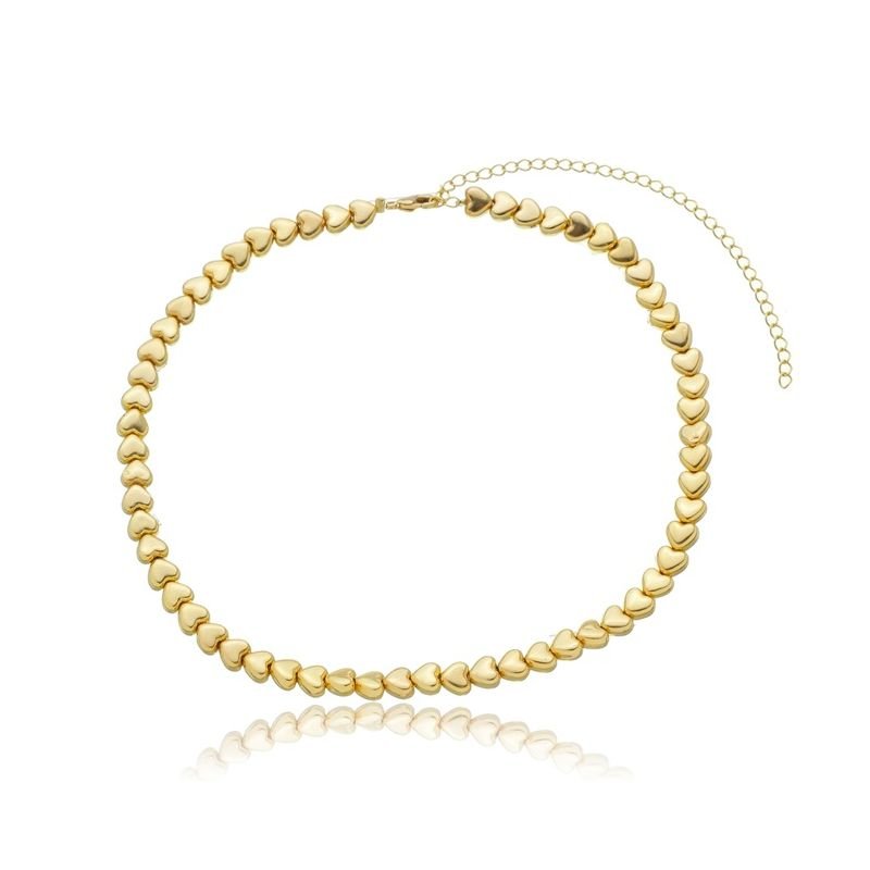 CHOKER CORAÇÕES ABS DOURADO FOLHEADO