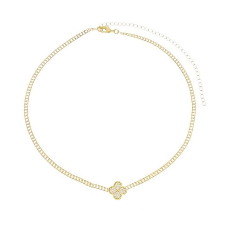 CHOKER TREVO 4 FOLHA COM ZIRCONIA BANHADO A OURO 18K