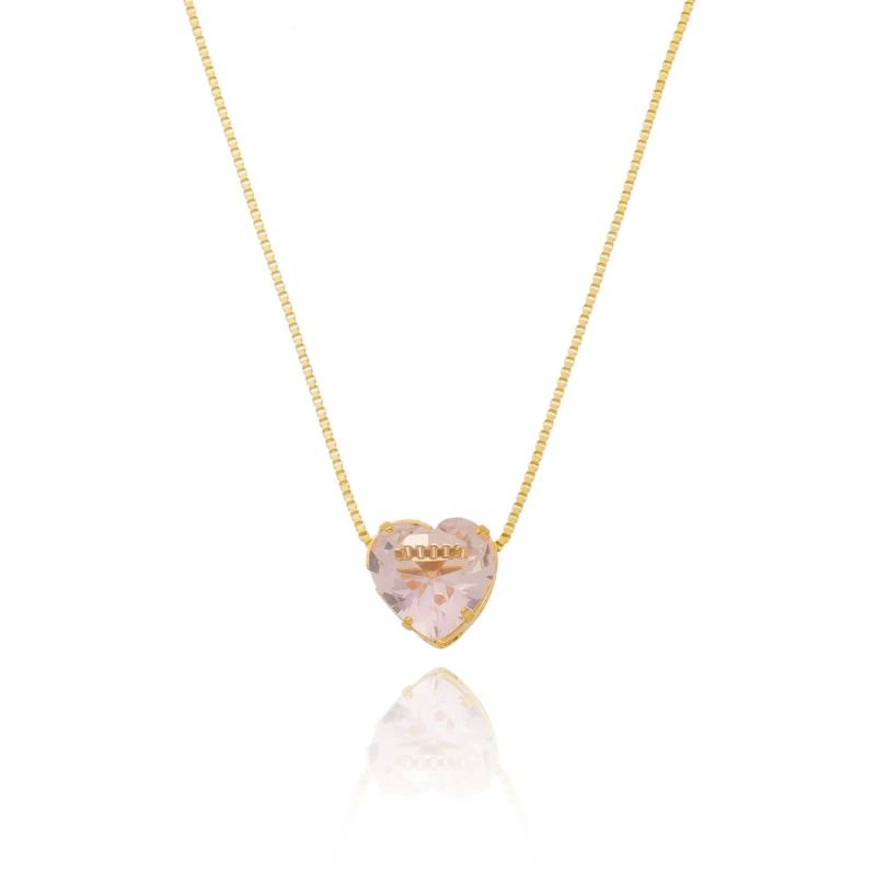COLAR CORAÇÃO CHAMPAGNE BANHADO A OURO 18K