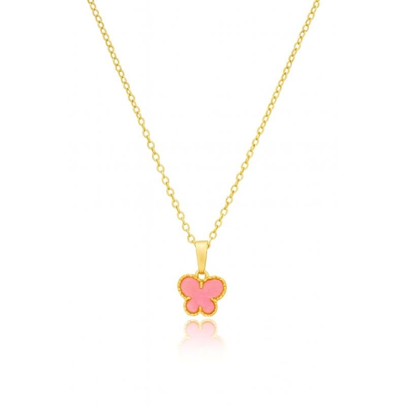 COLAR BORBOLETA ROSA 10MM BANHADO A OURO 18K