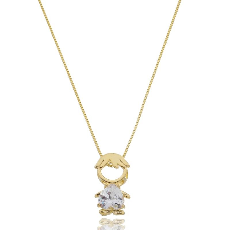 COLAR CORAÇÃO CRISTAL MENINO DOURADO FOLHEADO