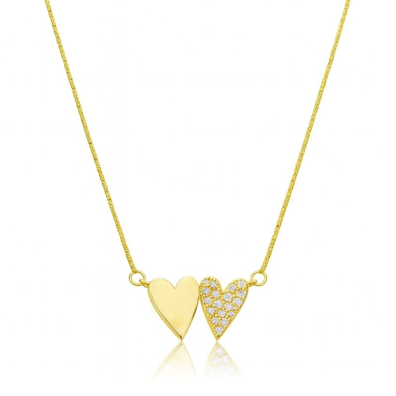 COLAR CORAÇÃO LISO E COM ZIRCONIA BANHADO A OURO 18K
