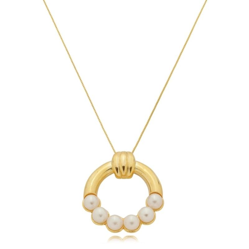 COLAR FRONTAL COM PEROLA BANHADO A OURO 18K