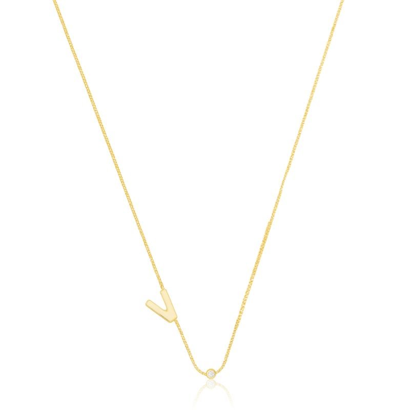 COLAR INICIAL A ZIRCÔNIA BANHADO A OURO 18K