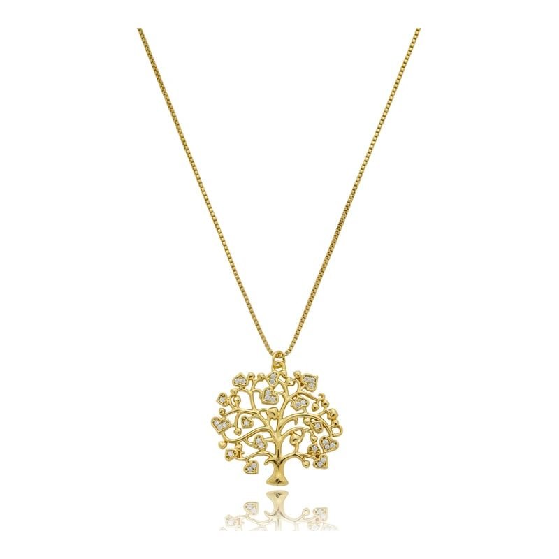 COLAR LONGO ARVORE DE AFETOS BANHADO A OURO 18K