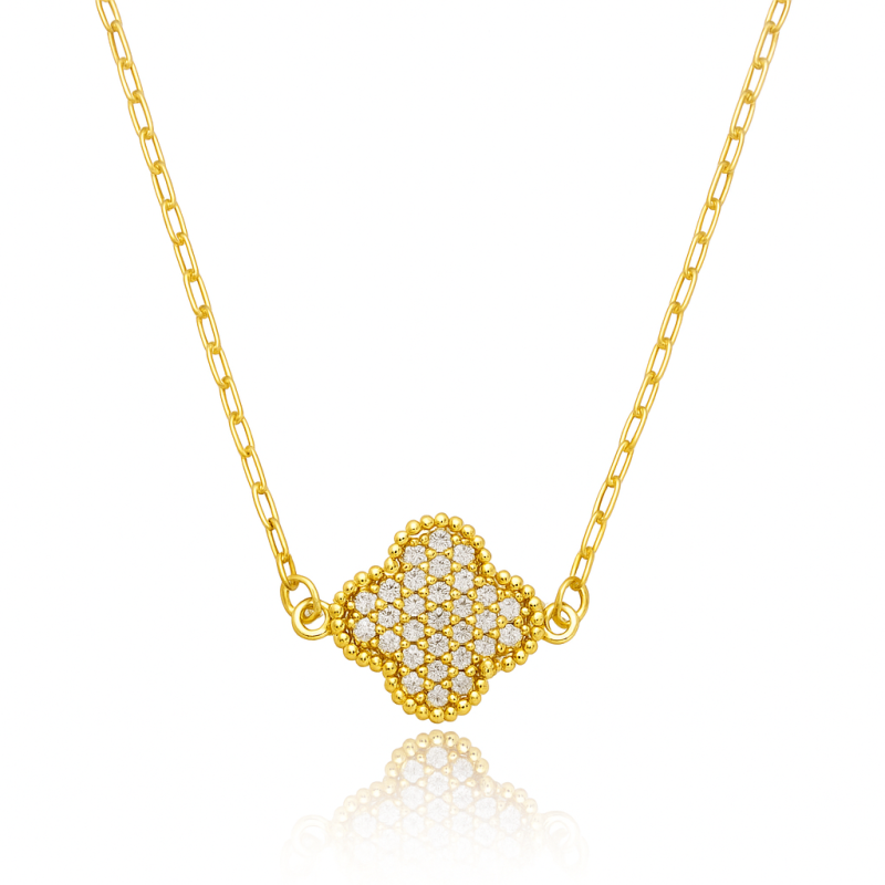 COLAR LONGO TREVO COM ZIRCÔNIA BANHADO A OURO 18K
