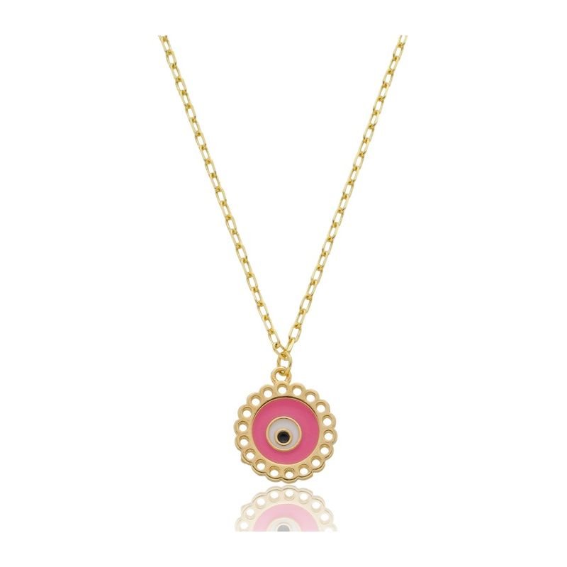 COLAR OLHO GREGO ROSA RESINADO BANHADO A OURO 18K