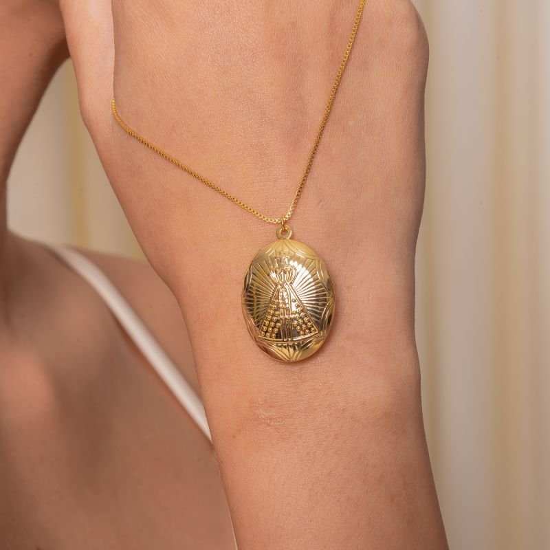 COLAR RELICÁRIO AVE MARIA BANHADO A OURO 18K