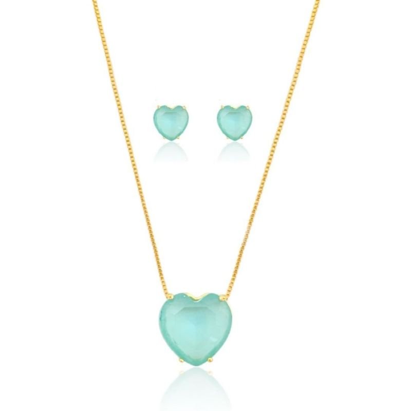 CONJUNTO CORAÇÃO CELESTE BANHADO A OURO 18K