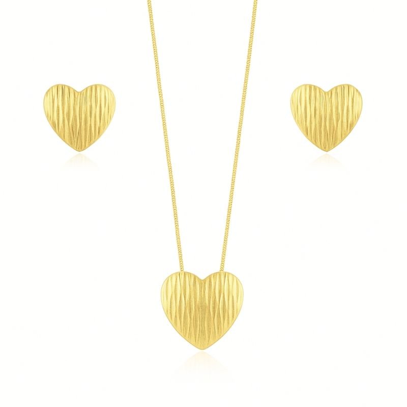 CONJUNTO CORAÇÃO RISCADO BANHADO A OURO 18K