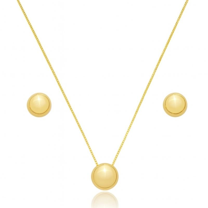CONJUNTO ESFERA 10MM BANHADO A OURO 18K