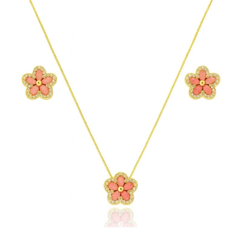 CONJUNTO FLORECER VERMELHO BANHADO A OURO 18K