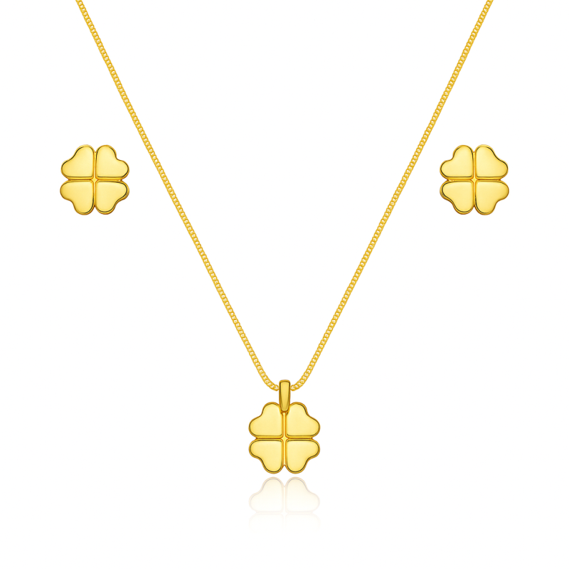 CONJUNTO TREVO DA SORTE BANHADO A OURO 18K