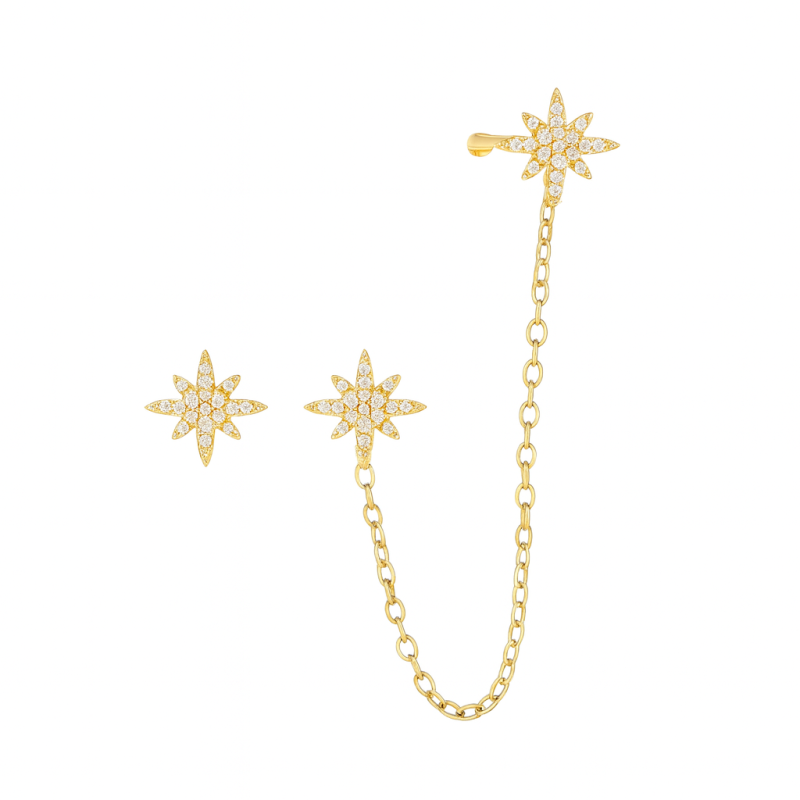 EAR LINE STARS ZIRCÔNIA BANHADO A OURO 18K