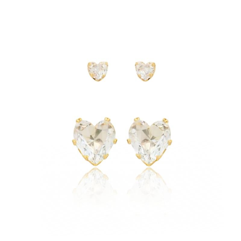 KIT BRINCO DUPLO CORAÇÃO BANHADO A OURO 18K