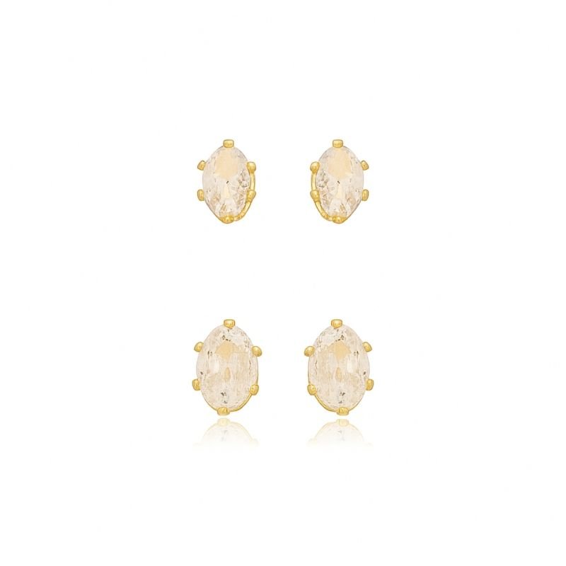 KIT BRINCO OVAL ZIRCÔNIA BANHADO A OURO 18K