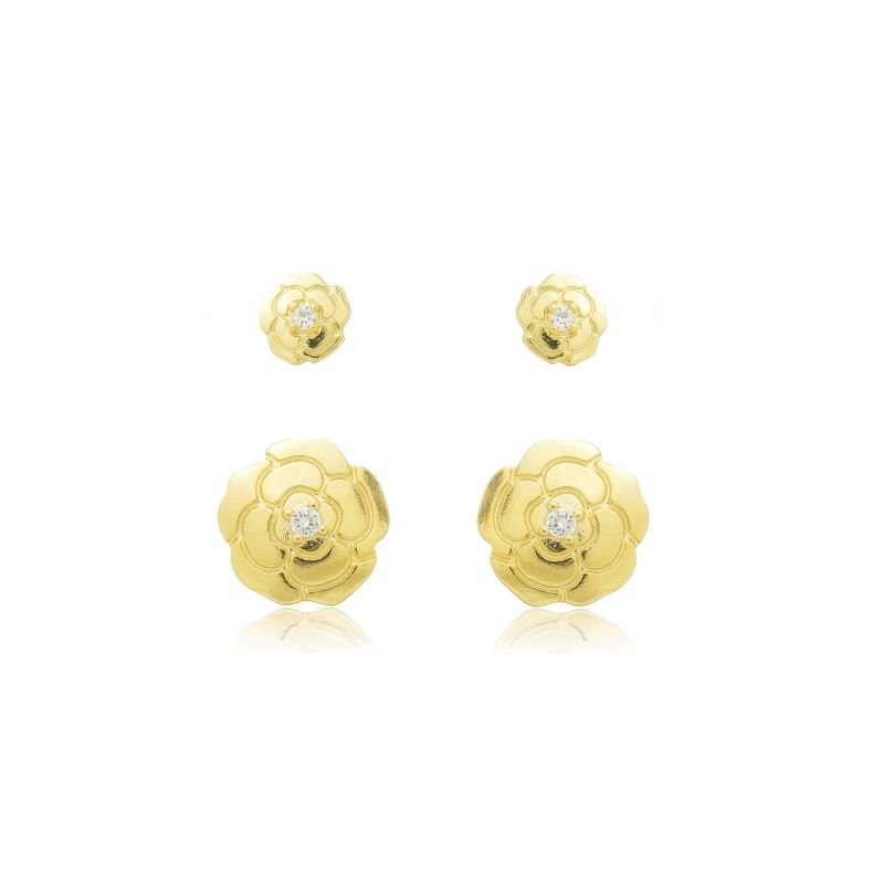 KIT DOIS PARES CAMÉLIAS COM ZICÔNIA P, M DOURADO FOLHEADO