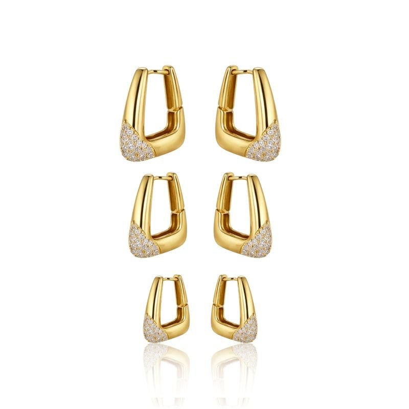 KIT TRIO DE ARGOLAS TRIANGULAR COM DETALHE DE ZIRCÔNIA BANHADO A OURO 18K