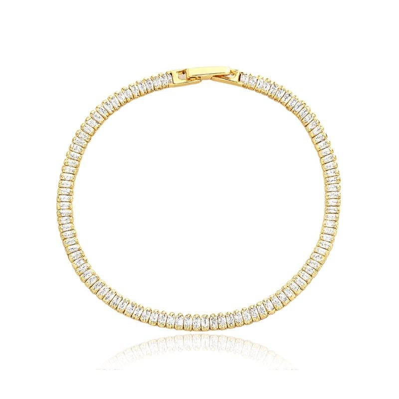PULSEIRA BAQUETE TRILHA ZIRCÔNIA BANHADO A OURO 18K