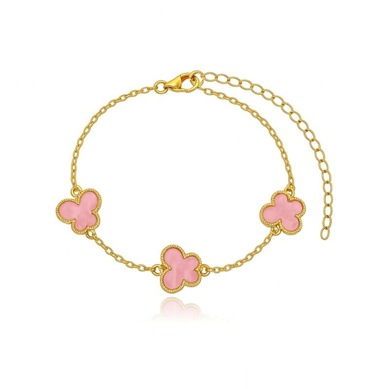 PULSEIRA BORBOLETA ROSA 10MM BANHADO A OURO 18K