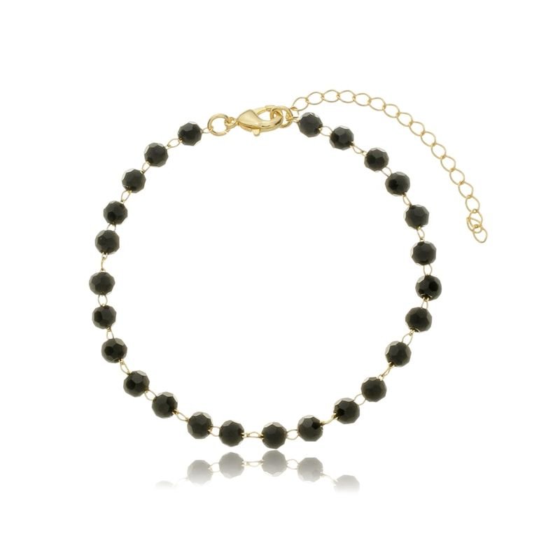 PULSEIRA CRISTAIS BLACK DOURADO FOLHEADO