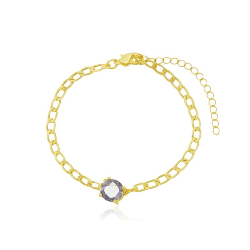 PULSEIRA PEDRA LILÁS 8MM BANHADO A OURO 18K